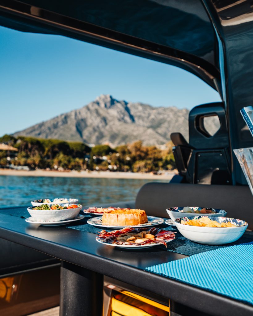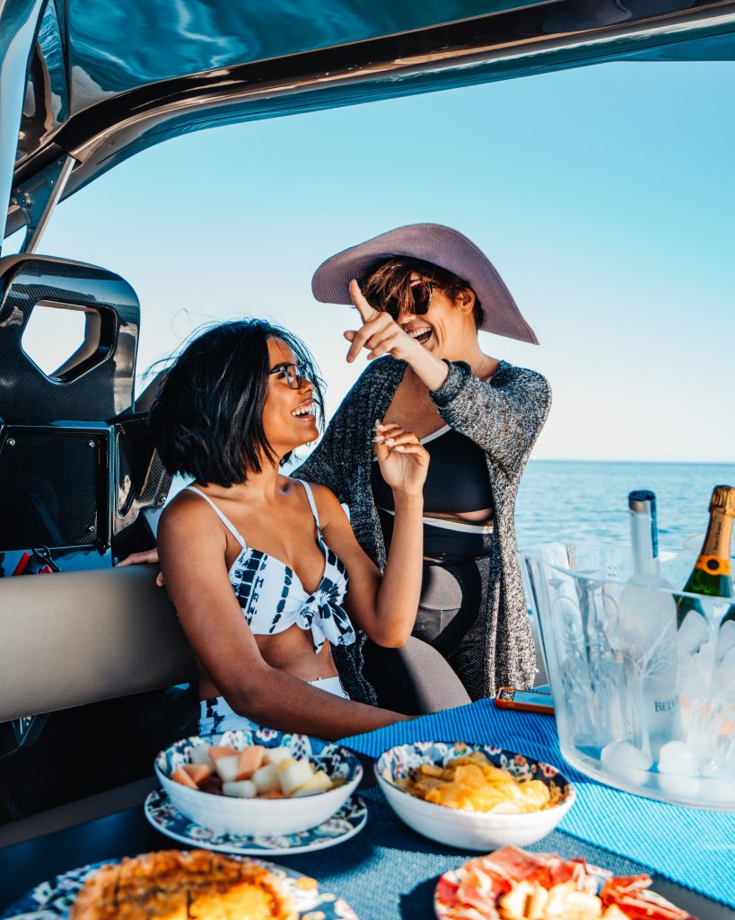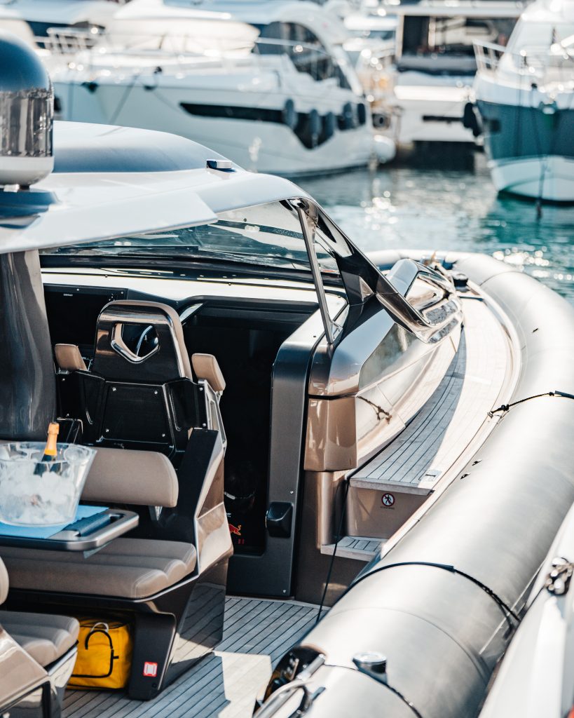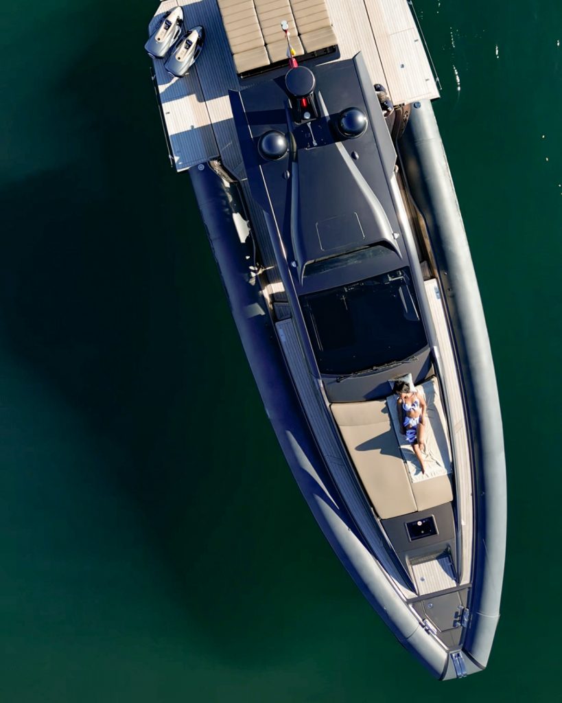 It offers the typical comfort of a larger yacht thanks to its two wide opening terraces. It has large space for sunbathing on its bow and aft deck. Additionally, it features modern water toys that you can enjoy on board. The best choice for exclusive moments at sea.